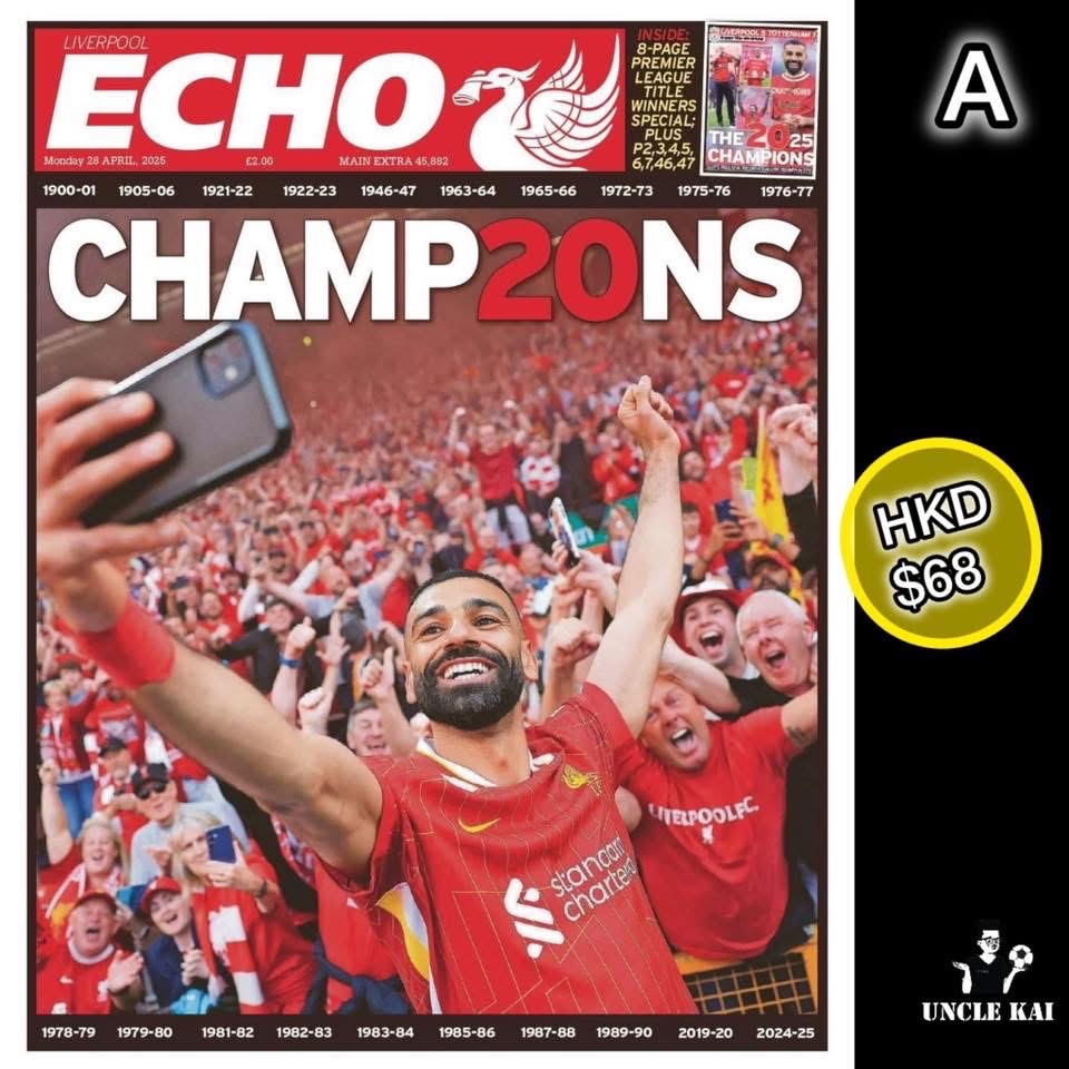 LFC Echo 報紙(英超冠軍特別版)🌟現貨🌟 A 款💵$68@1 B 款💵$78@1 📣📣又係收藏報紙嘅時間啦!20次高級聯賽冠軍🏆 📲歡迎留言/WhatsApp /messenger 下單 *官方授權產品