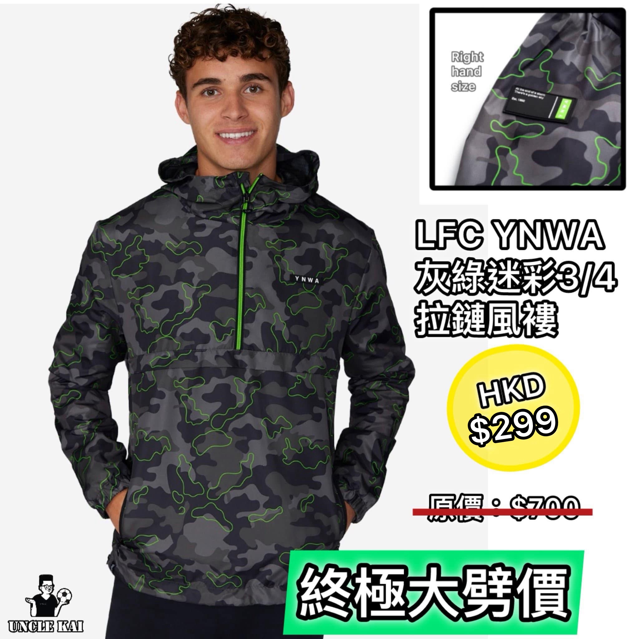 LFC YNWA 灰綠迷彩3/4 拉鏈風褸🌟現貨🌟 💥超震撼價錢💥😨😨😨售完即止💥 💵大劈價:$299@1(原價:$700) ▪️size:L/XL 📣📣超震撼價錢!不用錯過! 呢件褸勁多detail 位,右臂的牌仔刻上「at the end of a storm ,there’s a golden sky 」、心口及衣領的YNWA 、加上灰綠迷彩Pattern撞得好靚! 必買!數量唔多、有興趣便落單吧! 📲歡迎留言下單 *官方授權產品